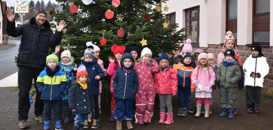 Mit ihrem Schmuck haben die jüngsten Bürgerinnen und Bürger Jossgrunds dem Weihnachtsbaum – und der Gemeinde – ein besonderes Stück Adventsfreude geschenkt.