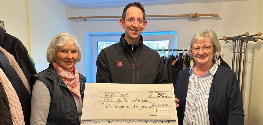 Die Kleiderkammer Jossgrund hat der Freiwilligen Feuerwehr Lettgenbrunn eine Spende in Höhe von 500 Euro überreicht. Der Betrag stammt aus einem Teil der im Jahr 2025 erwirtschafteten Erlöse und steht beispielhaft für das soziale Engagement der ehrenamtlich geführten Einrichtung.